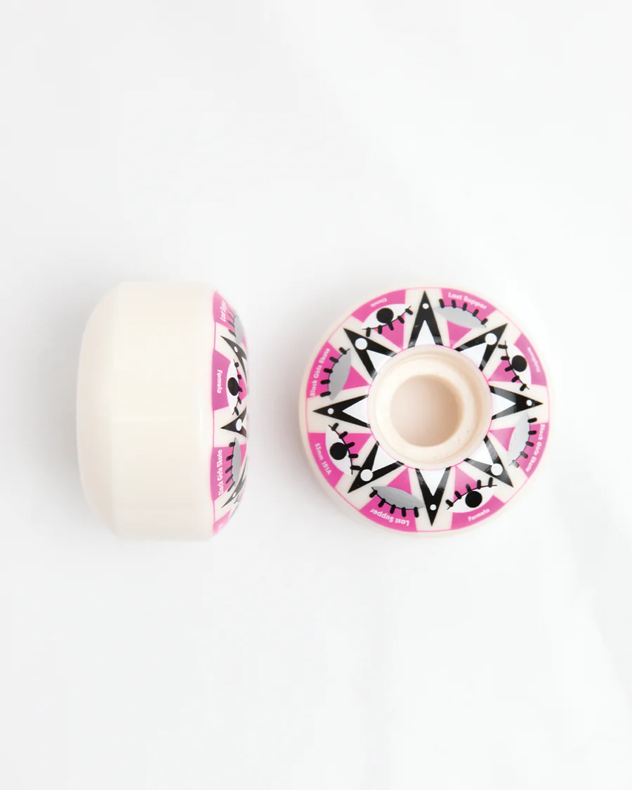 Esta rueda cuenta con ilustraciones de Jahnia Holterhoff, una talentosa artista negra cuyo diseño da vida a este proyecto. El 15 % de los ingresos se destina directamente a Black Girls Skate, lo que les ayuda a distribuir esta rueda entre los patinadores de su comunidad.